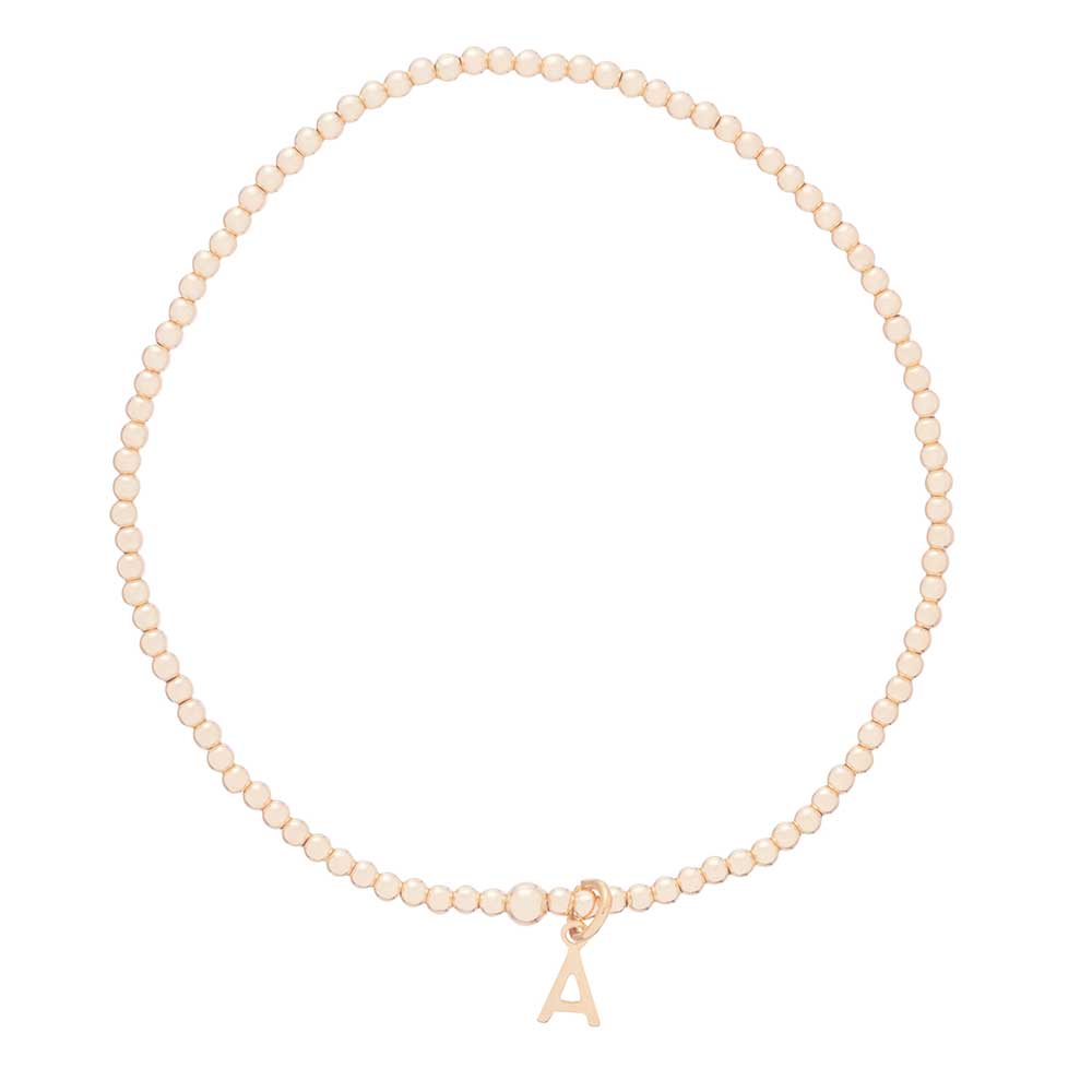 Gold 2 mm Beaded Bracelet Respect Gold Initial Charm