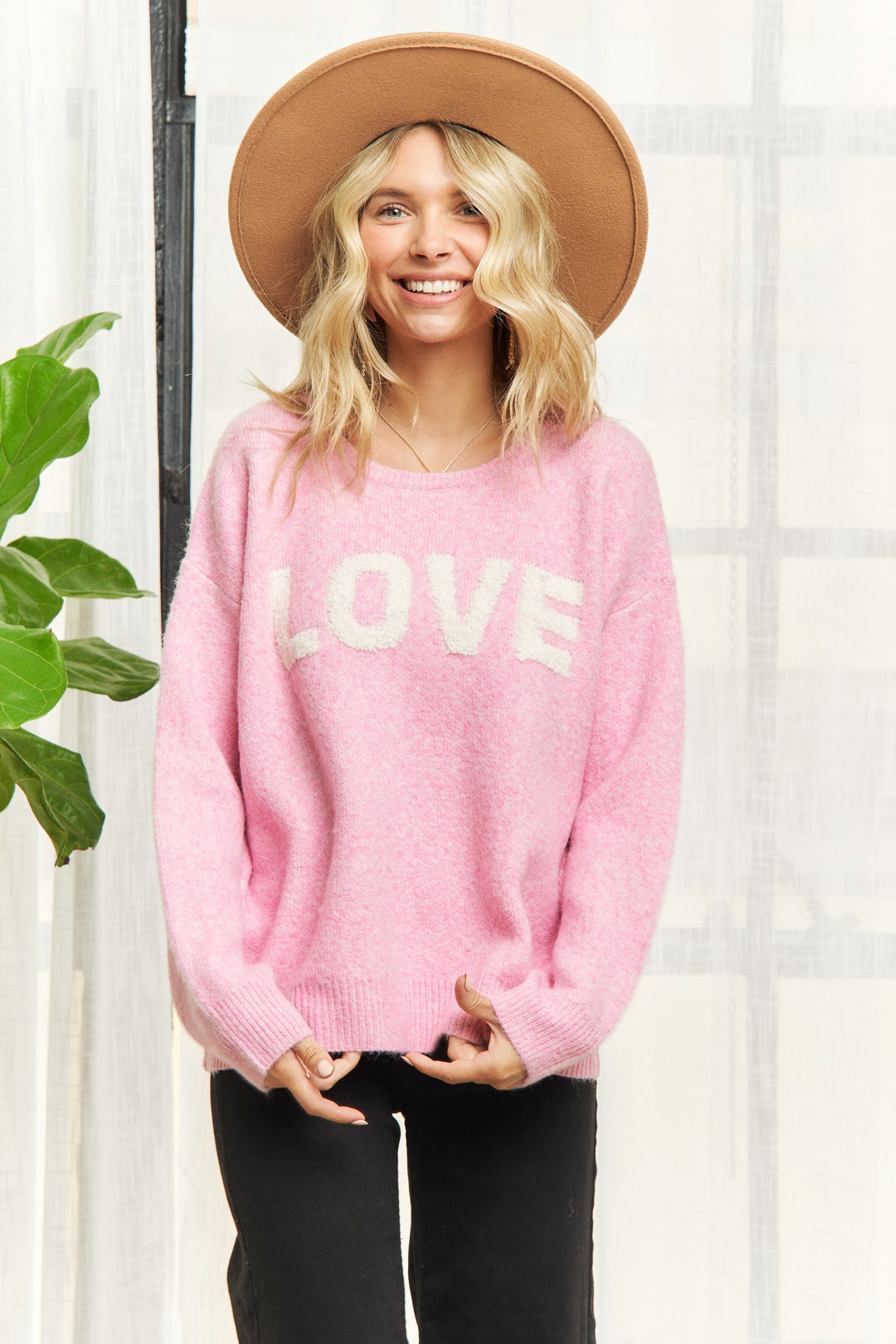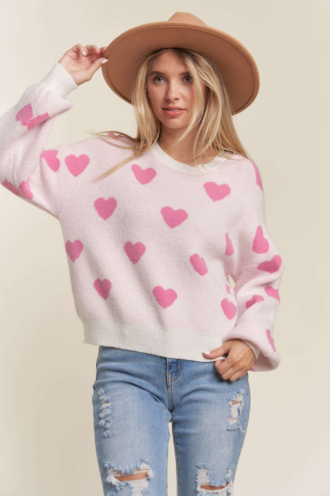 Valentines Sweetheart Patchwork Mock Neck Oversize Sweatshirt: Light Pink