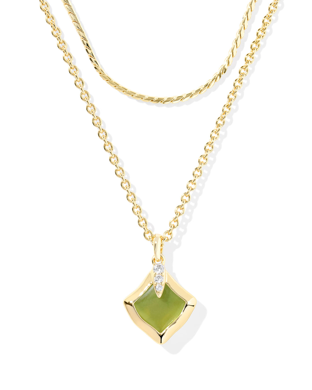 Joelle Gold Multi Strand Necklace - Green Mother of Pearl