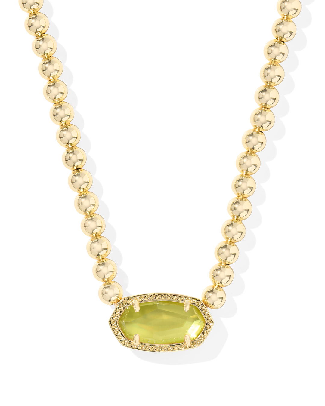 Elisa Gold Beaded Necklace Green Mother of Pearl