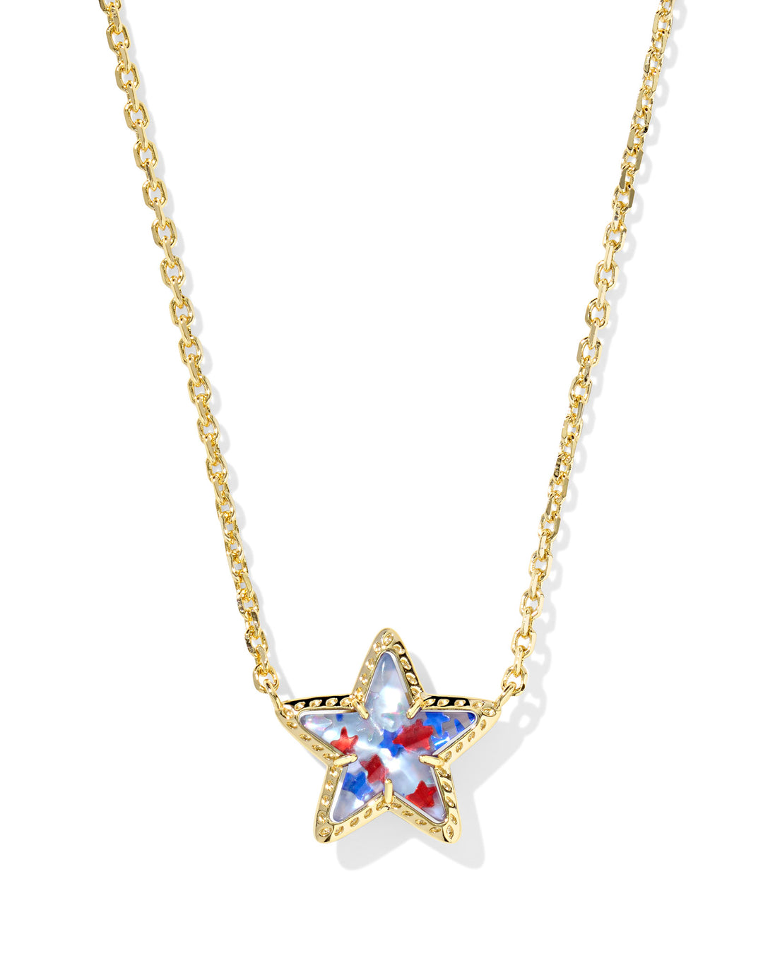 Cassidy Star Pendant Necklace Gold Red, White and Blue
