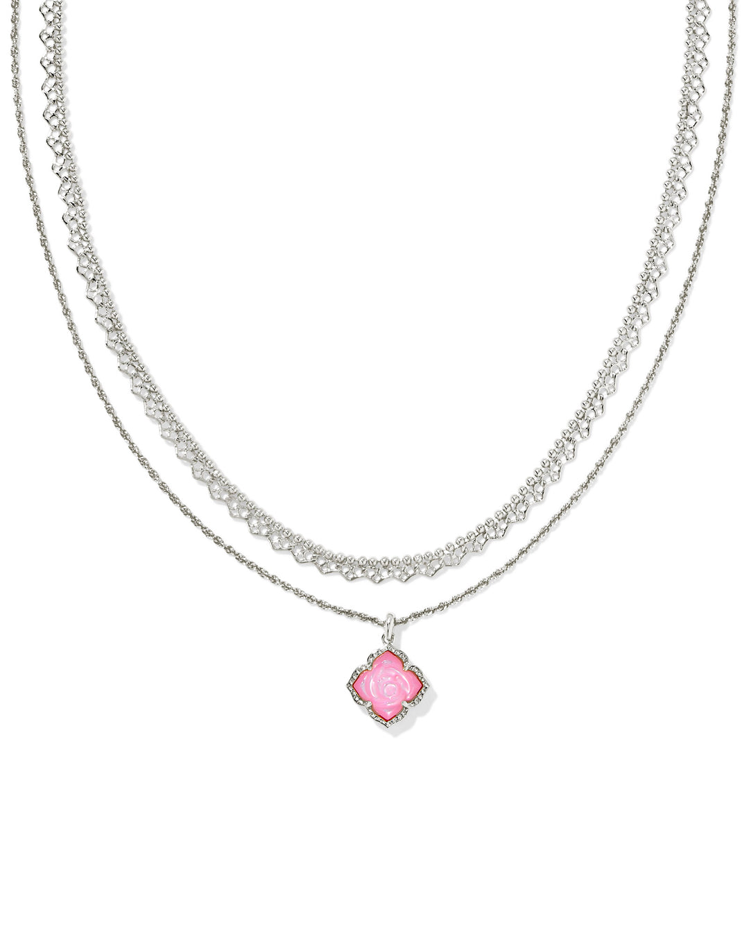 Mallory Rose Silver Multi Strand Necklace - Blush Mother of Pearl