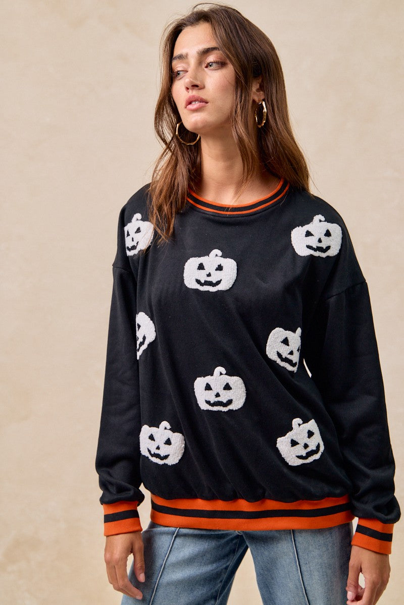 Black Luxeknit V-Neck Pullover Sweatshirt