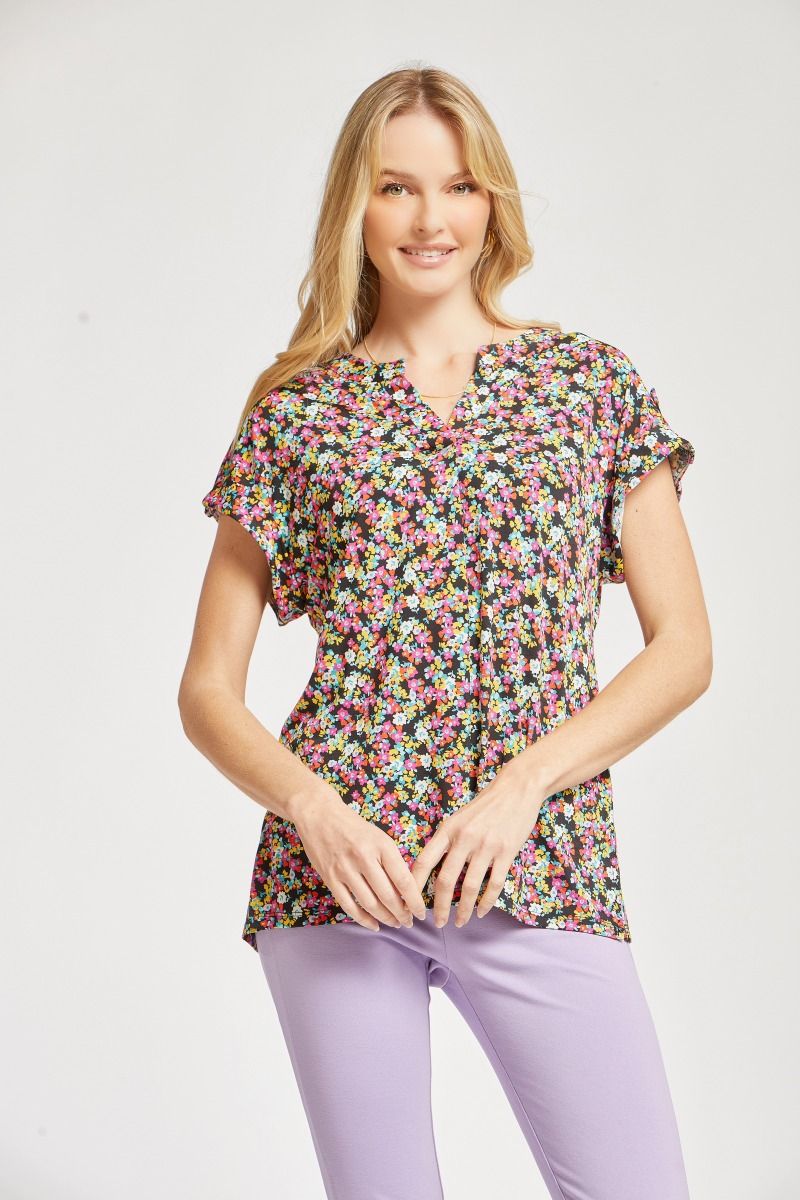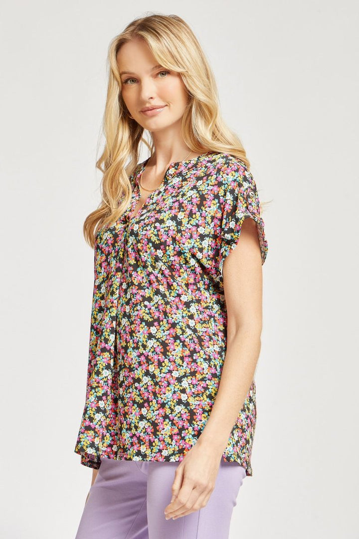 Hello to dolman short sleeve lizzy tops! We love all the lizzy details on the body with tabbed sleeve and pleated back. Relaxed fit on this wrinkle free fabric.