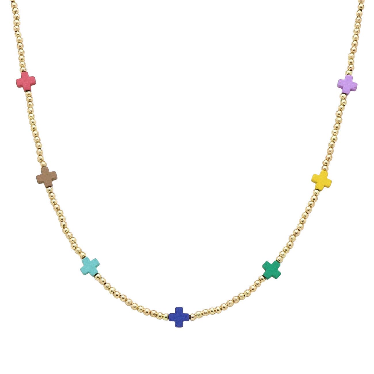 Gold CCB Beaded with Multi Cross 16"-18" Necklace