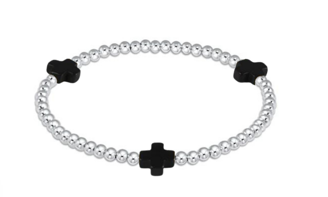 Signature Cross Sterling Silver 3 mm Onyx Beaded Bracelet