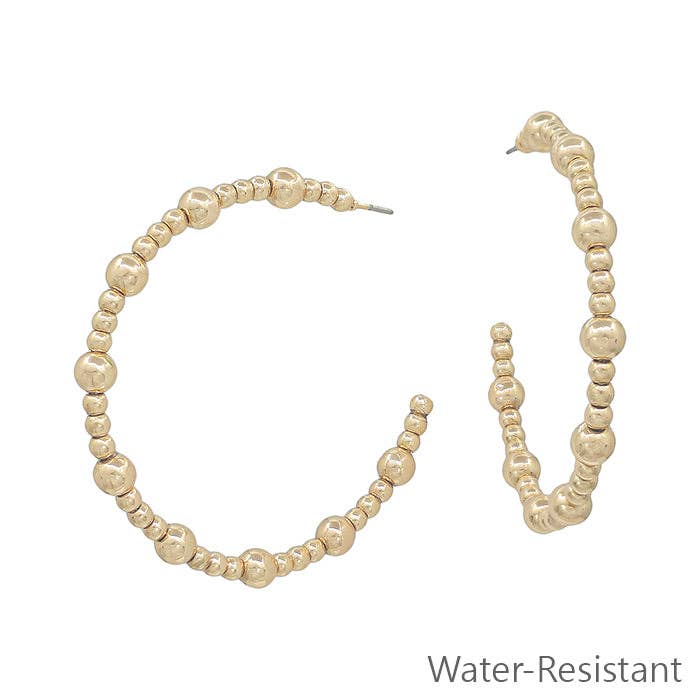 Water Resistant Small Gold Beaded and 2" Hoop Earrings